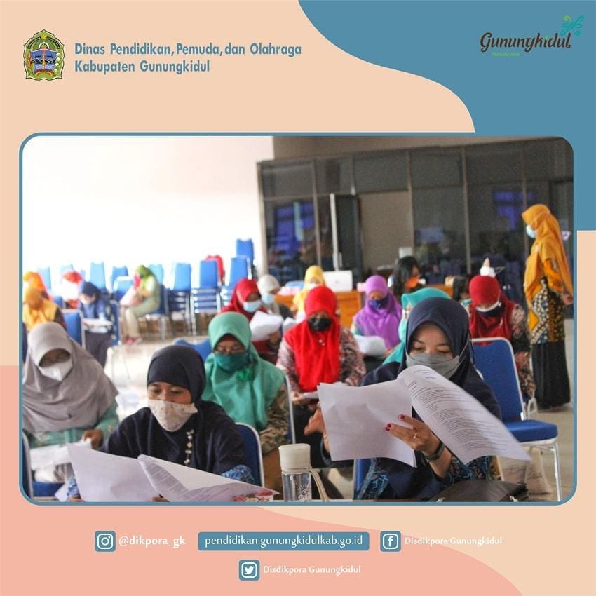 WONOSARI- Dinas, Pendidikan, Pemuda, dan Olahraga (Disdikpora) Kabupaten Gunungkidul melalui Bidang Pendidikan Anak Usia Dini dan Pendidikan Non Formal (PAUDPNF) menyelenggarakan kegiatan Bimtek Peningkatan Kapasitas Penyelenggaraan PAUD HI Kabupaten Gunungkidul. Kegiatan dilaksanakan di Ruang Rapat Handayani dan Ruang Rapat Sasana Kridha Wiyata Disdikpora Kabupaten Gunungkidul dengan diikuti oleh 100 peserta yang berasal dari lembaga-lembaga PAUD yang terdiri dari lembaga TK, SPS, KB, dan TPA yang sudah ter akreditasi. Kegiatan yang diselenggarakan mulai tanggal 18 Agustus 2021 sampai dengan 21 Agustus 2021 bertujuan untuk melaksanakan PAUD Holistik Integratif (HI) pada lembaga – lembaga PAUD dari 100 peserta tersebut.
